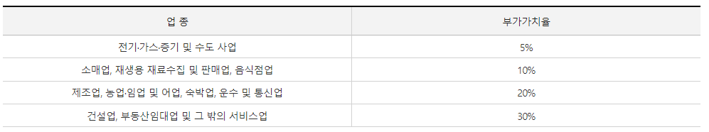 간이과세자의 업종별 부가가치율(2021.6.30. 이전)