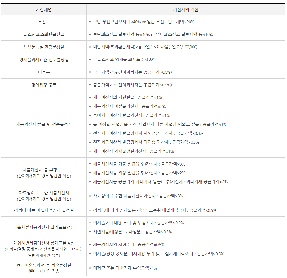 간이과세자의 경우 ’21.7.1.이후 재화 또는 용역을 공급하거나 공급받는 분부터 세금계산서등 발급 관련 가산세(부가법§60②③1·3·5호)와 매출처별세금계산서합계표 관련 가산세(부가법§60⑥), 세금계산서 미수취 가산세((신설) 공급대가×0.5%)가 적용됨