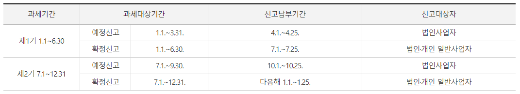 ※ 일반적인 경우 법인사업자는 1년에 4회, 개인사업자는 2회 신고