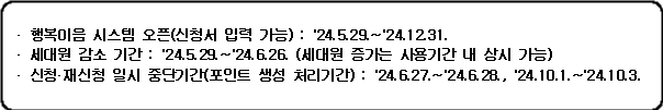| 세대원 감소, 하절기 당겨쓰기 미신청(해제) | '24.5.29. ~ '24.6.26. |