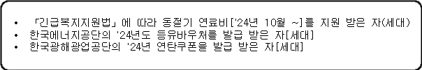 · (긴급복지지원법) 「긴급복지지원법」에 따라 동절기 연료비('23.10~)를 지원받을 예정인 자(세대)