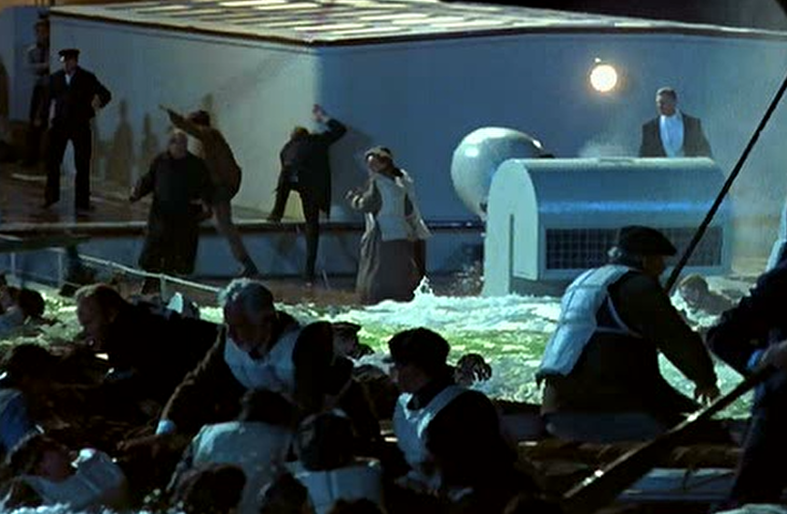 타이타닉호가 가라앉기 시작하자 로즈와 잭은 공포와 절망의 회오리바람에 휩싸이게 됩니다. 가슴 아픈 절정에서 잭은 로즈를 구하기 위해 자신의 목숨을 희생하며 침몰하는 배의 잔해에 달라붙어 있는 로즈를 절대로 놓아주지 말라고 촉구합니다.