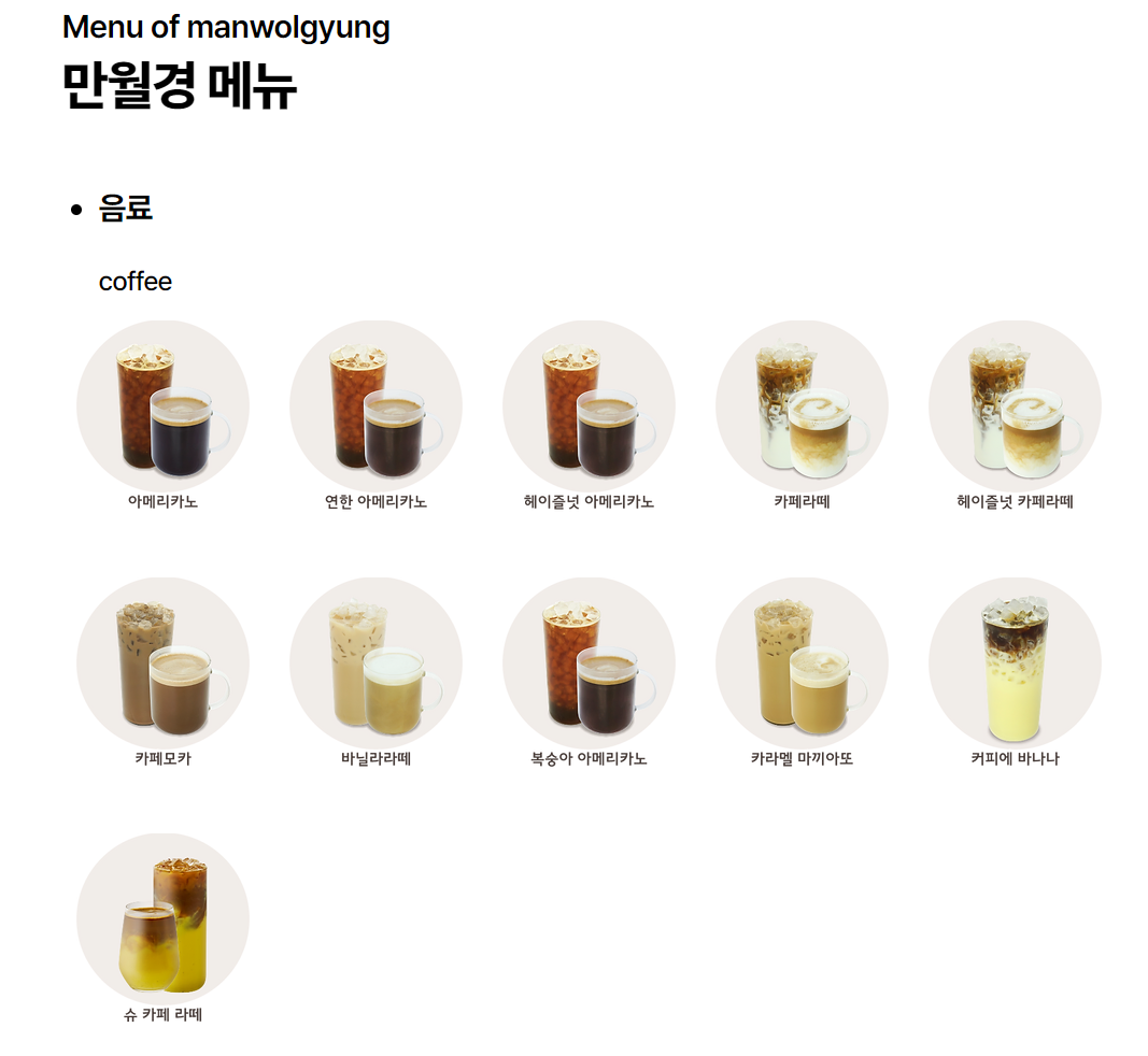 다음은 음료입니다.
